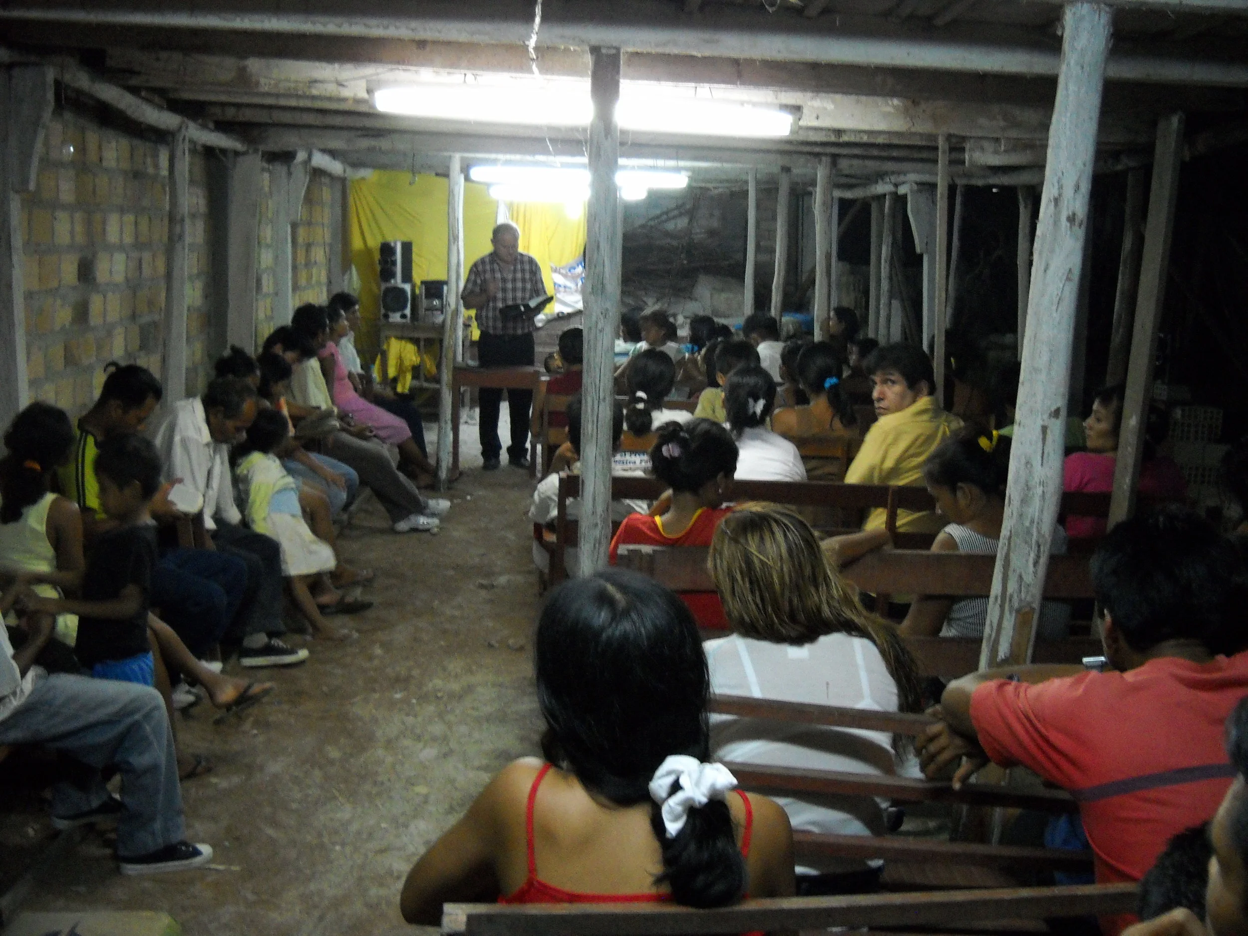 Dr. Bergamini predicando en Iglesia en la Amazonia Peruana.